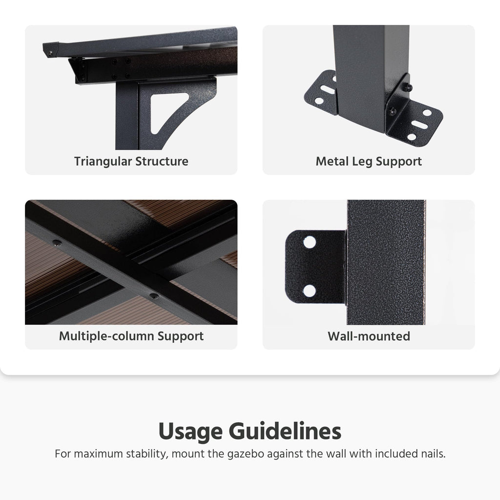 - Sturdy & Stable Construction: Featuring a durable metal frame, this gazebo is built to last. Easily secure it to the wall using the included screws and pre-drilled holes for enhanced stability in windy conditions.