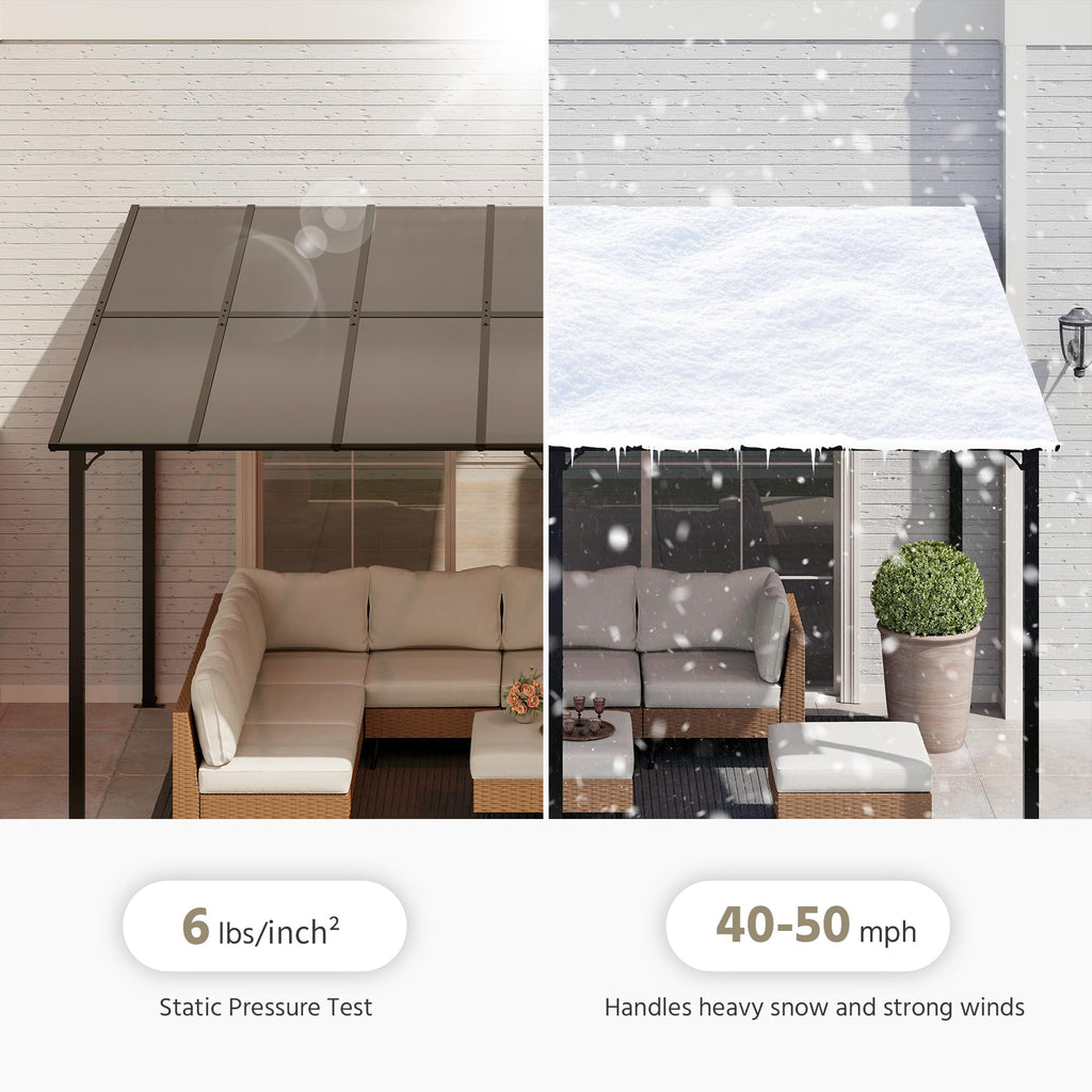 - Tilted Flexible Roof Design: The angled roof prevents rain/snow accumulation while 6mm polycarbonate panels flex to minimize damage from hail impacts. The pergola is built for year-round protection without cracking.