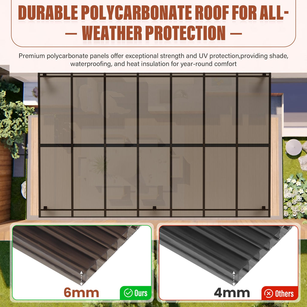 - Sloped Roof Design: The sloped roof effectively prevents water accumulation, ensuring efficient drainage while adding a modern, stylish touch to your patio or backyard.