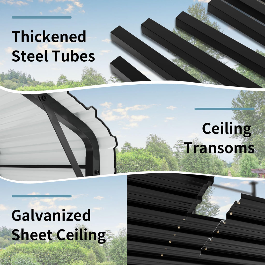 - 【Stable Base】: To ensure the stability of the heavy metal carport, we have strengthened the structural design of the base that enhances stability.(please note that the garage can only be used on horizontal surfaces).