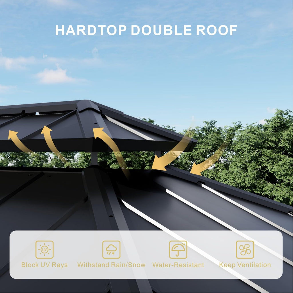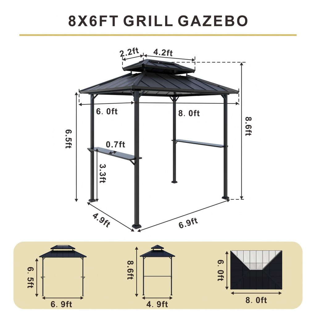 - Spacious 8'×6' Size: This hardtop gazebo offers a generous 8'×6' area, ideal for hosting BBQs, parties, and outdoor events. It provides plenty of room for most grills, making it perfect for backyard gatherings.