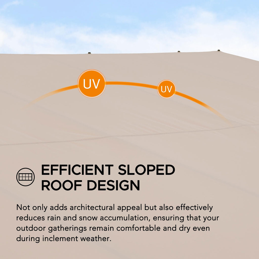 • 【Efficient Rain and Snow Management】- The sloping roof design of this lean to gazebo effectively reduces rain and snow accumulation, ensuring that your outdoor gatherings remain comfortable and dry even during adverse weather conditions.