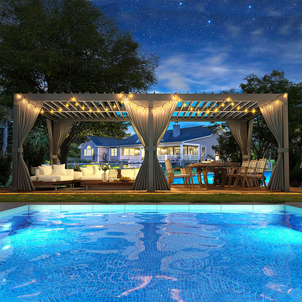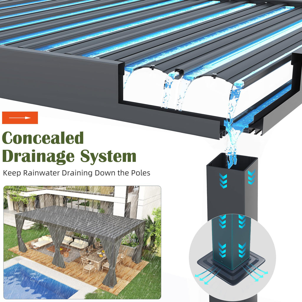 • 【All-Weather Protection】Concealed gutters designed to drain rainwater while retaining the aesthetic design of the outdoor pergola, 100% waterproof canopy blocks 99% UV rays. IP65-rated motor ensures durability.