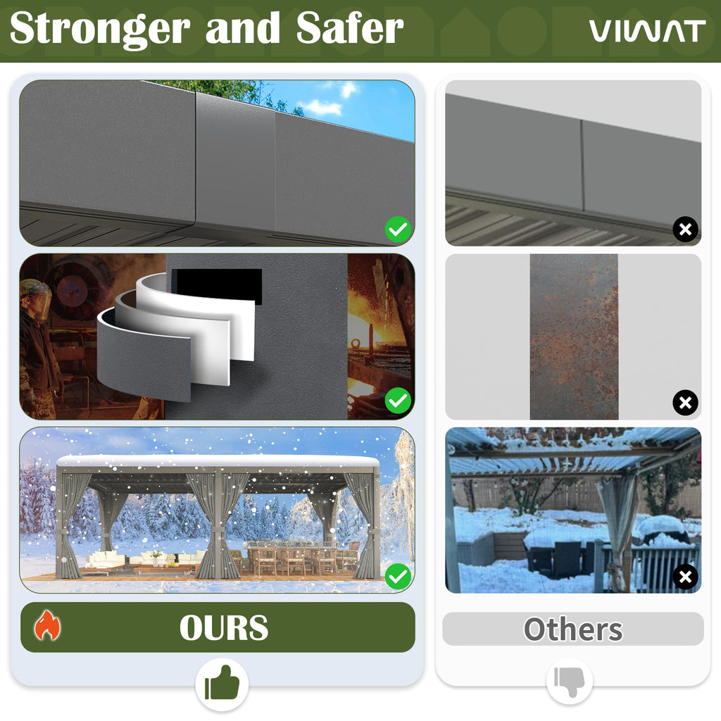 • 【Premium Aluminum Frame】 Heavy-duty rustproof & powder-coated metal withstands extreme weather (snow/wind/UV). 10x20 FT large coverage for patio, pool, or garden gatherings.