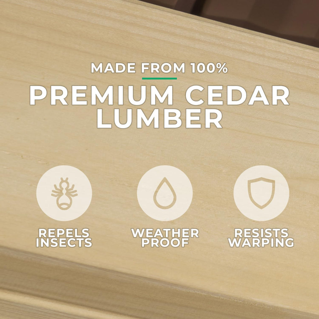 - Built with 100% premium cedar lumber, finished in a natural cedar stain color