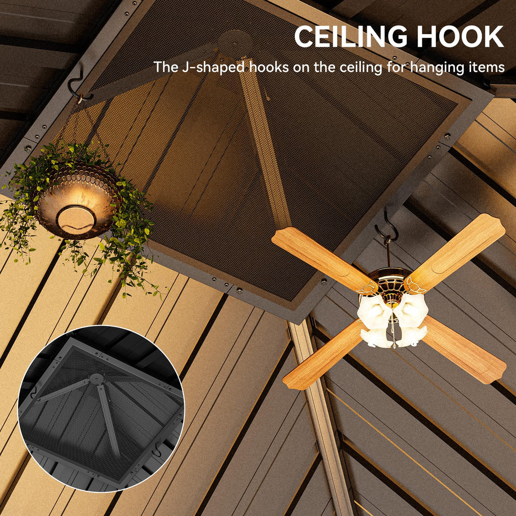 - DOUBLE LAYERED SIDEWALL- Hardtop gazebo features fully enclosed double-sided zipper, double trail system and double layer sidewall. Polyester cloth and mesh grant good ventilation and an open view, protect you from rain and UV rays while adding more privacy. Provide a safe and comfortable environment for your family and children