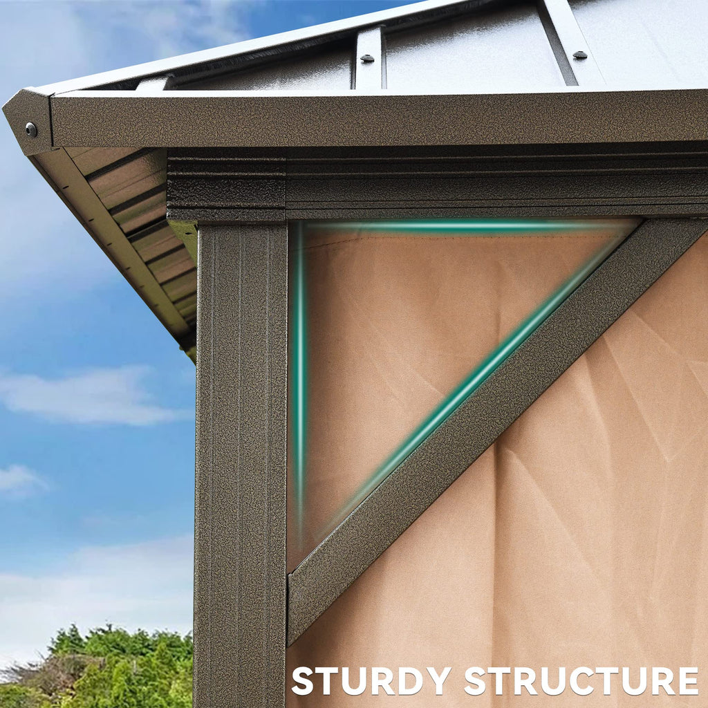 - DOUBLE LAYERED SIDEWALL- Hardtop gazebo features fully enclosed double-sided zipper, double trail system and double layer sidewall. Yellow polyester cloth and black mesh grant good ventilation and an open view; protect you from rain and UV rays while adding more privacy. Provide a safe and comfortable environment for your family and children