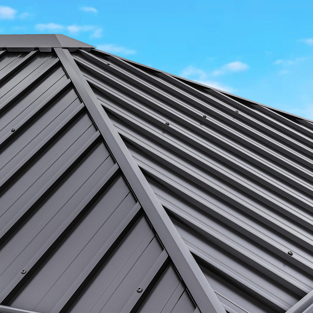 - GALVANIZED IRON ROOF TOP - Engineered with a durable galvanized iron sheet surface, this gazebo outdoor patio not only resists fading but also significantly extends the longevity of the structure. Centrally featured is a convenient hook, perfectly positioned for suspending lighting or fan fixtures, enhancing your enjoyment of outdoor spaces.