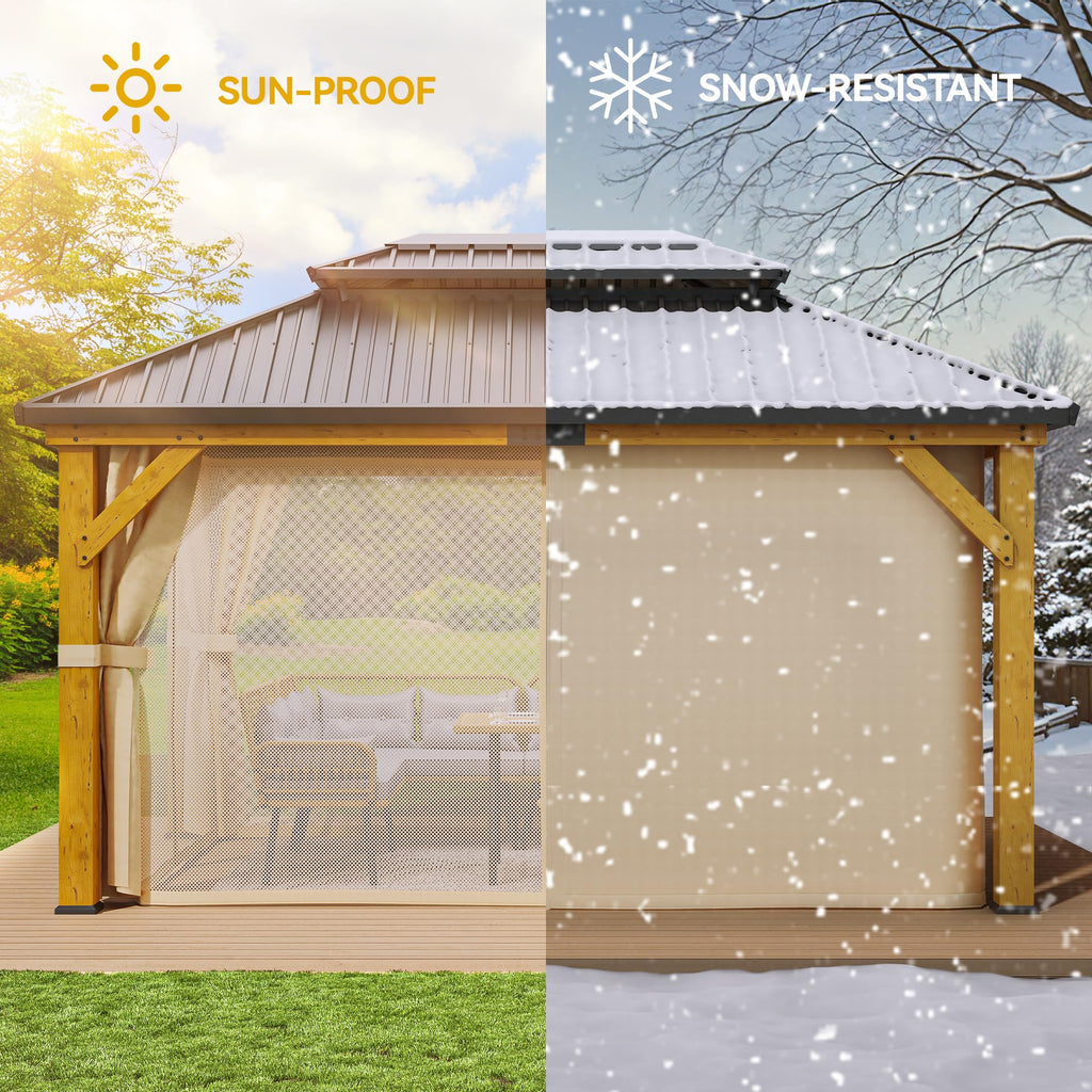 - Dual-Layer Sidewalls: The hardtop gazebo features a dual-track system, double-sided zippers, and beige yellow polyester cloth and mesh. Ensures airflow, visibility, UV/rain protection, and privacy. Creates a secure, family-friendly shelter for outdoor comfort