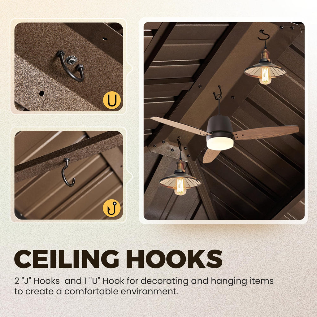 - 【Galvanized Steel & Double-roof】- This patio gazebo has a double-layer galvanized steel roof that offers great ventilation and airflow. Its sturdy construction provides protection against wind, rain, and snow, while the galvanized steel material ensures thermal insulation, waterproofing, and noise reduction.